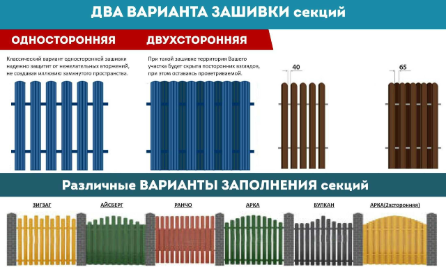 1. Односторонний: Штакетник крепится к лагам только с одной стороны. Это самый простой и экономичный вариант установки, обеспечивающий достаточную приватность и защиту.