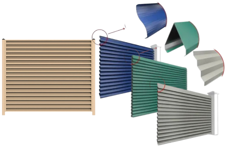 • Разнообразие материалов и цветов: Вы можете выбрать еврожалюзи из различных материалов (металл, дерево, пластик) и в широкой цветовой гамме, что позволяет создать ограждение, идеально соответствующее вашим предпочтениям.