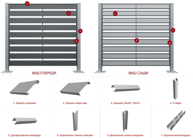 - Повышенная приватность: Перекрывающая конструкция ламелей и их обратная ориентация максимально ограничивают видимость с улицы, обеспечивая высокий уровень приватности на вашей территории. Вы сможете спокойно отдыхать, не беспокоясь о любопытных взглядах прохожих.