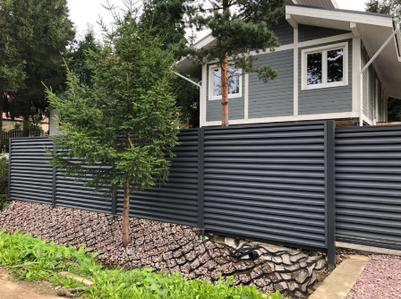 • Улучшение звукоизоляции: Благодаря своей конструкции, забор-жалюзи частично поглощает шум с улицы, создавая более комфортную обстановку на участке.