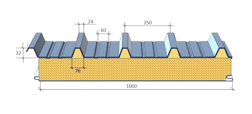 Единицы измерения параметров кровельных сэндвич-панелей – миллиметры (мм).