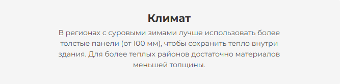 — Климатическая зона: В холодных регионах требуются более толстые панели для обеспечения достаточной теплоизоляции и снижения затрат на отопление.