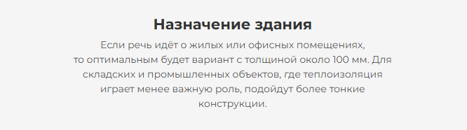 Этот параметр зависит от используемого утеплителя. Кроме минеральной ваты для теплоизоляции сэндвич-панелей используют:
