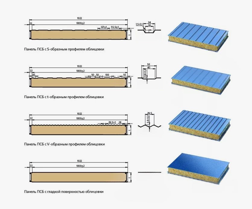 Основные размеры сэндвич-панелей для отделки стен зданий в соответствии с нормативами ГОСТ 32603-2012 (Панели металлические трёхслойные с утеплителем из минеральной ваты. Технические условия):