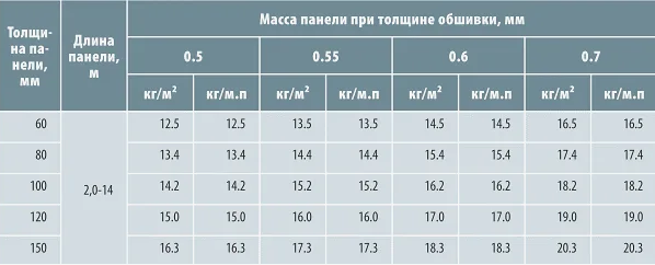 Масса панели, хотя и не является линейным измерением, является ключевым габаритным параметром, который необходимо учитывать. Она измеряется в кг/м² и зависит от всех вышеперечисленных факторов: толщины, типа утеплителя, толщины и типа стали обшивки.