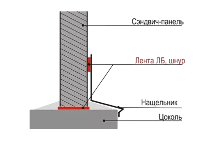 Примыкание сэндвич-панели к цоколю. Присоединение к цоколю в стык