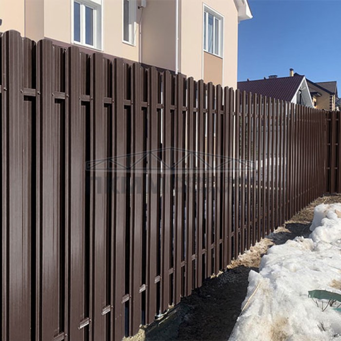 Купить штакетник П-образный фигурный 16,5х99-0.45 Полиэстер двухсторонний RAL8017/8017 по лучшей цене от лучшего производителя в широком разнообразии....
