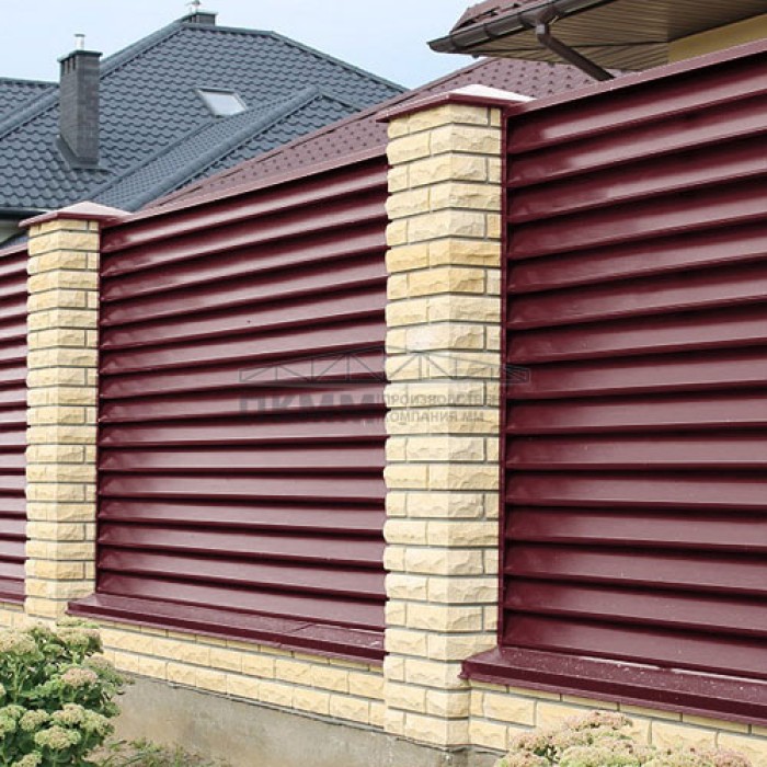 Купить забор-жалюзи Г 35х135-0,45 Полиэстер-Double с пленкой RAL 3005 качественно и недорого по цене производителя.