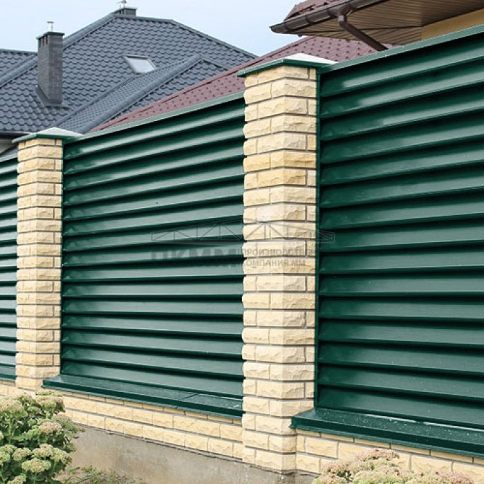 Купить забор-жалюзи Г 35х135-0,45 Полиэстер-Double с пленкой RAL 6005 по наиболее выгодной цене оптом и в розницу.